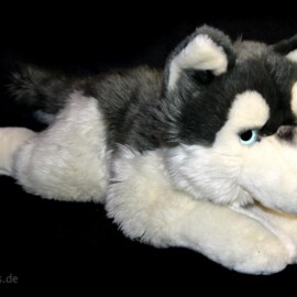 Awesome and unique husky - big sleeping husky by La Pelucherie. Bought at a toy store in Munich