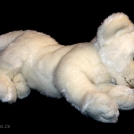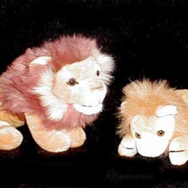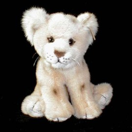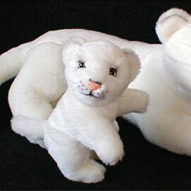 Two cute white lion cubs playing with each other. I got them from the Siegfried + Roy store at the Mirage (Las Vegas). Brand: Fiesta