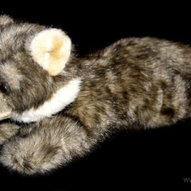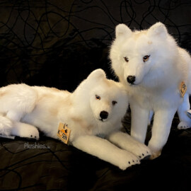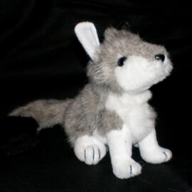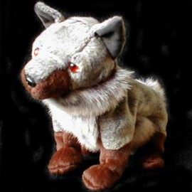 An adorable, fuzzy white wolf with large paws from Plueti. I also have the brown version.